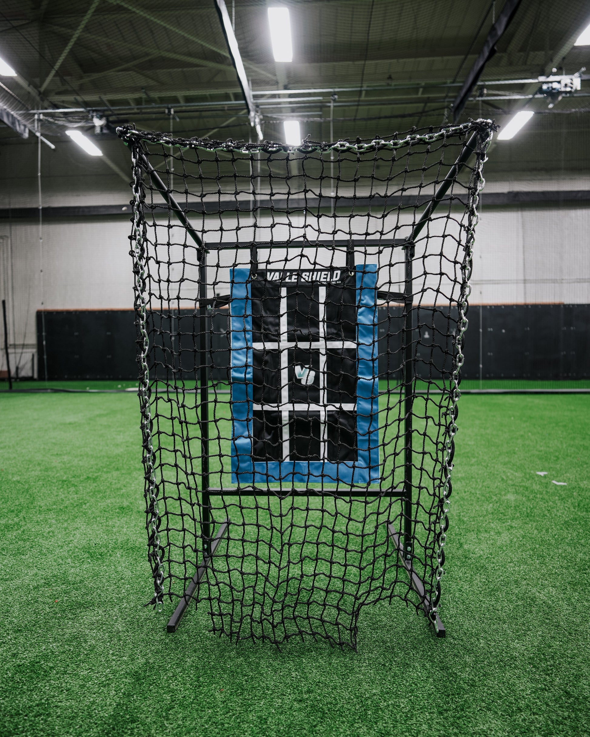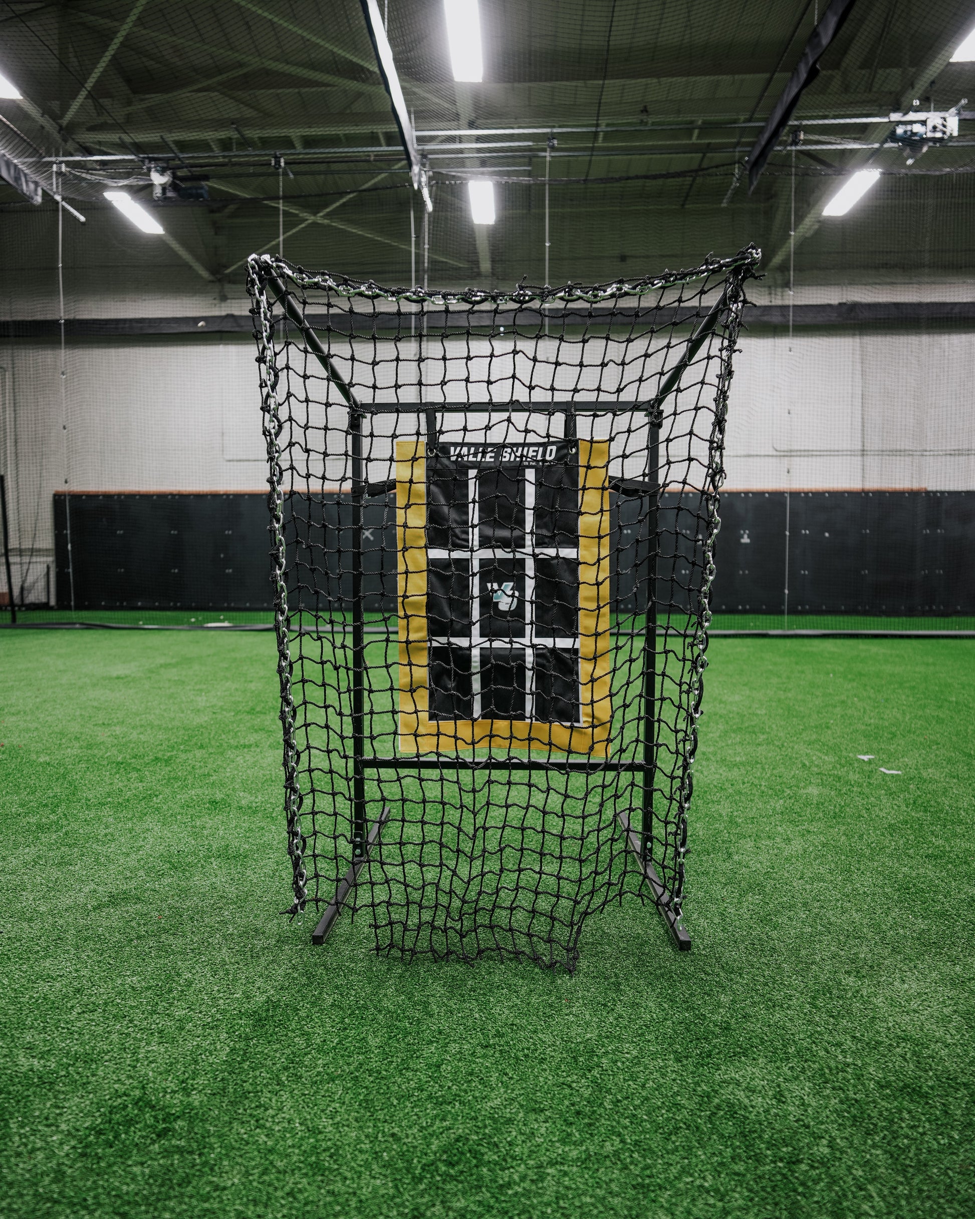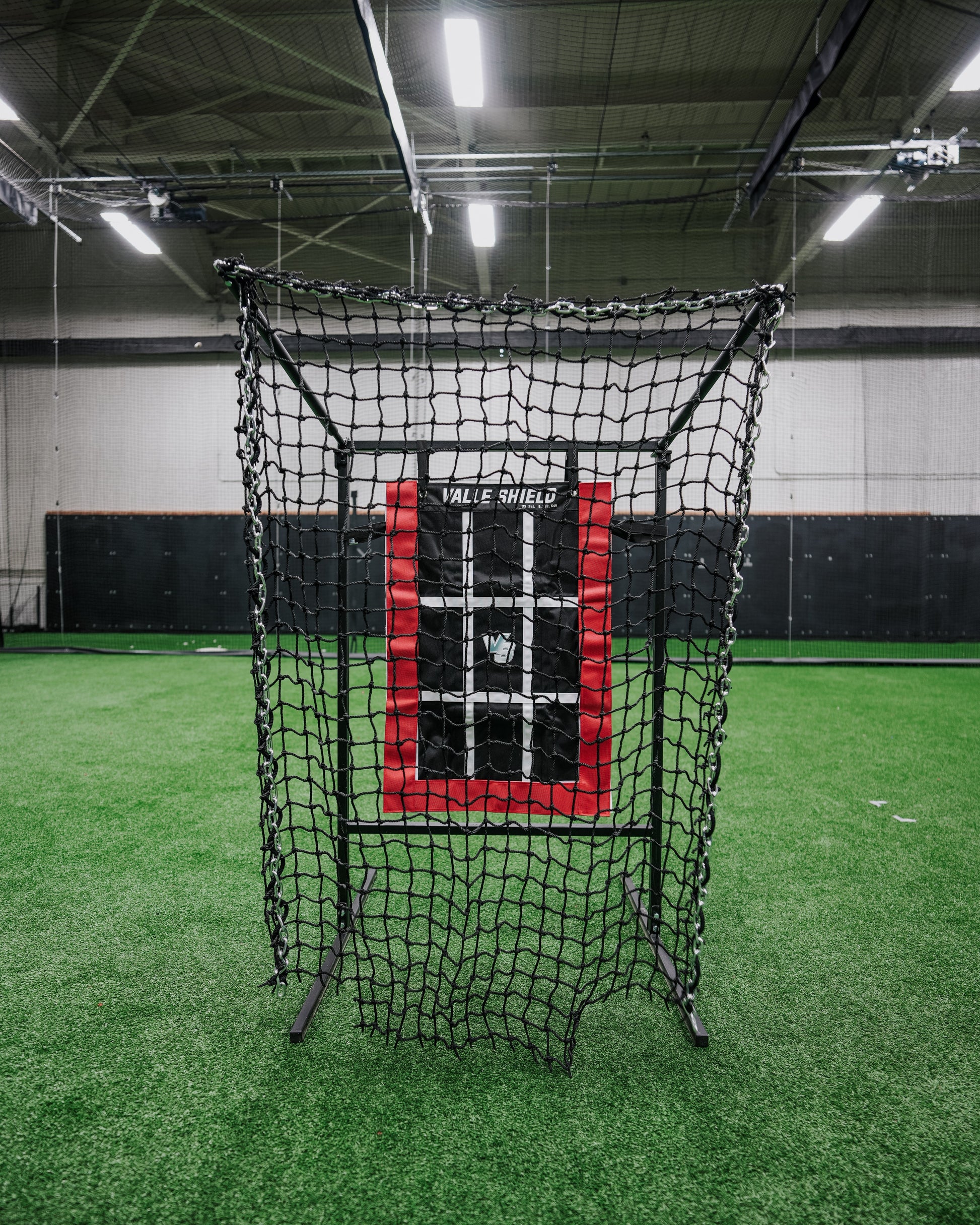 The Shield Target has a strike zone grid that is 17" wide like a home plate width, and includes a 3" border on each side to give a pitcher the perfect visual of just catching the corners for a strike or purposely throwing a couple inches off the strike zone to have a hitter swing at a pitch that is not a strike.